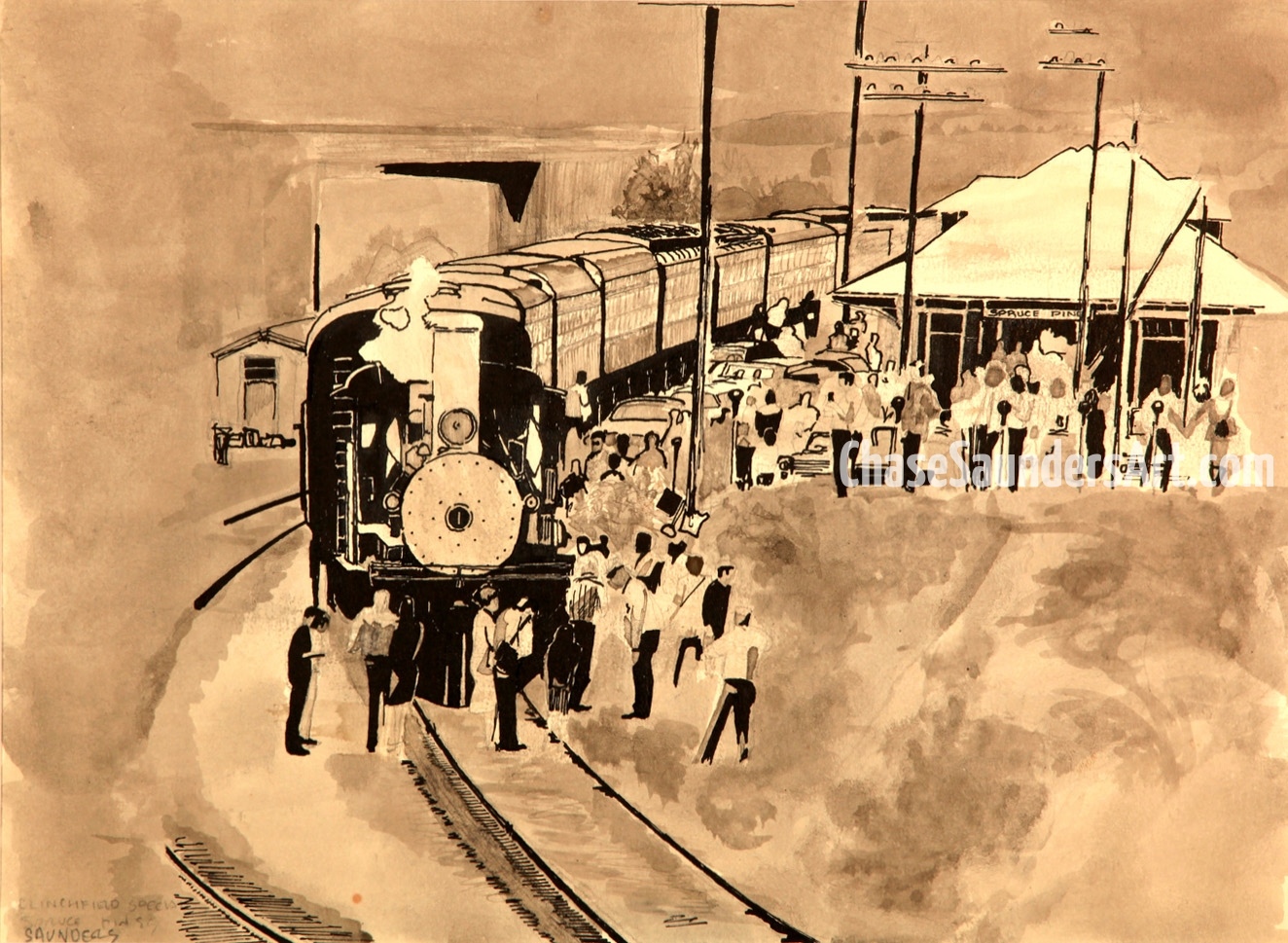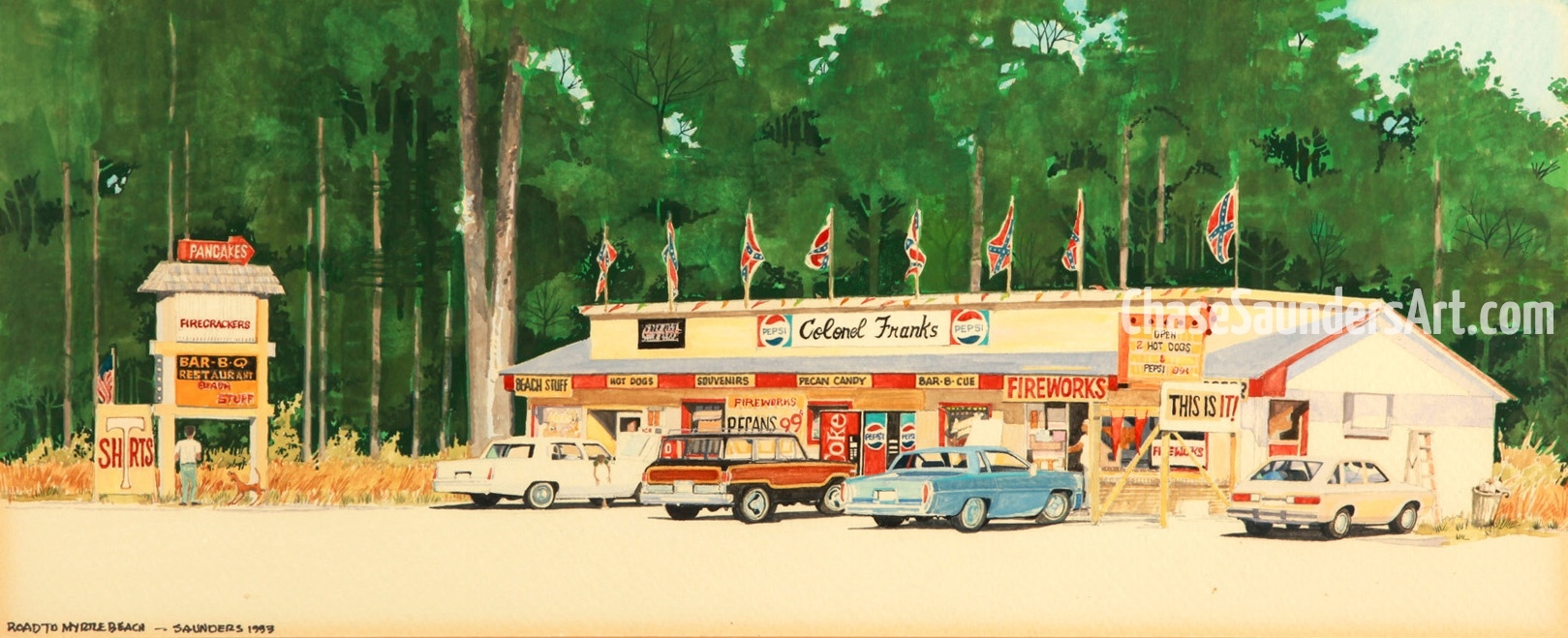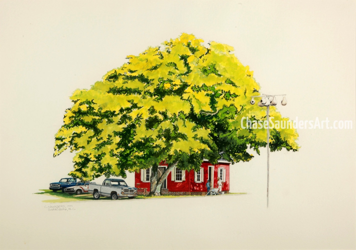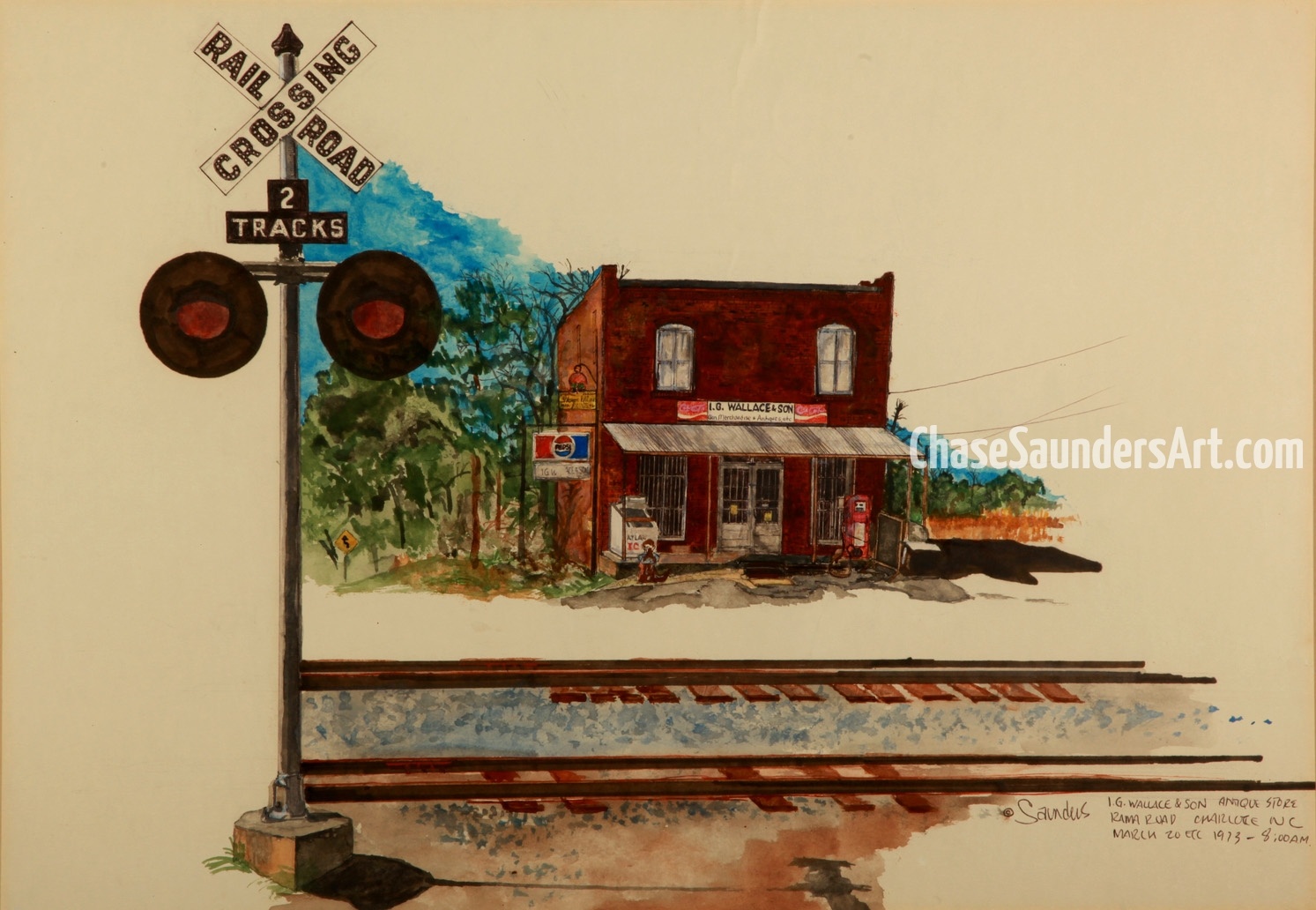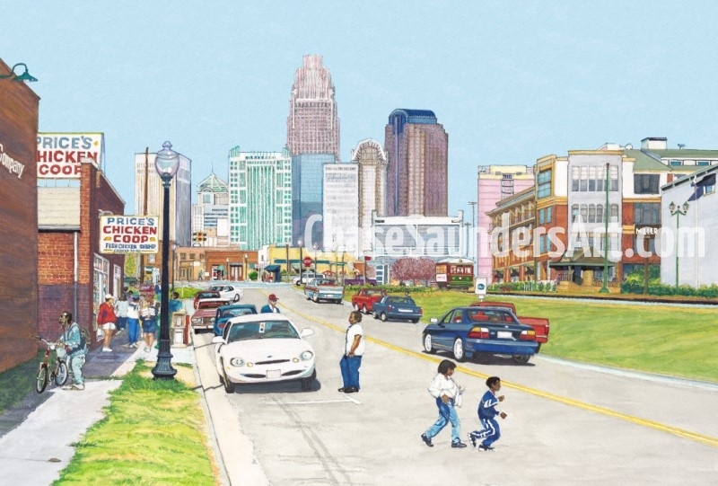 Chase Saunders is a Charlotte native and fifth-generation North Carolinian. He began painting the changing face of Charlotte and the two Carolinas in 1972 after law school. Painting and the arts have been a family tradition beginning with his great grandfather, grandmother, father, and his wife, a retired children’s art teacher. Digital technology now allows him to present his collection online in a gallery which features nearly five decades of work. Each painting in the collection is accompanied by a descriptive explanation of its significance. You are invited to tour the Carolinas as they once were …. with a few modern era pieces.